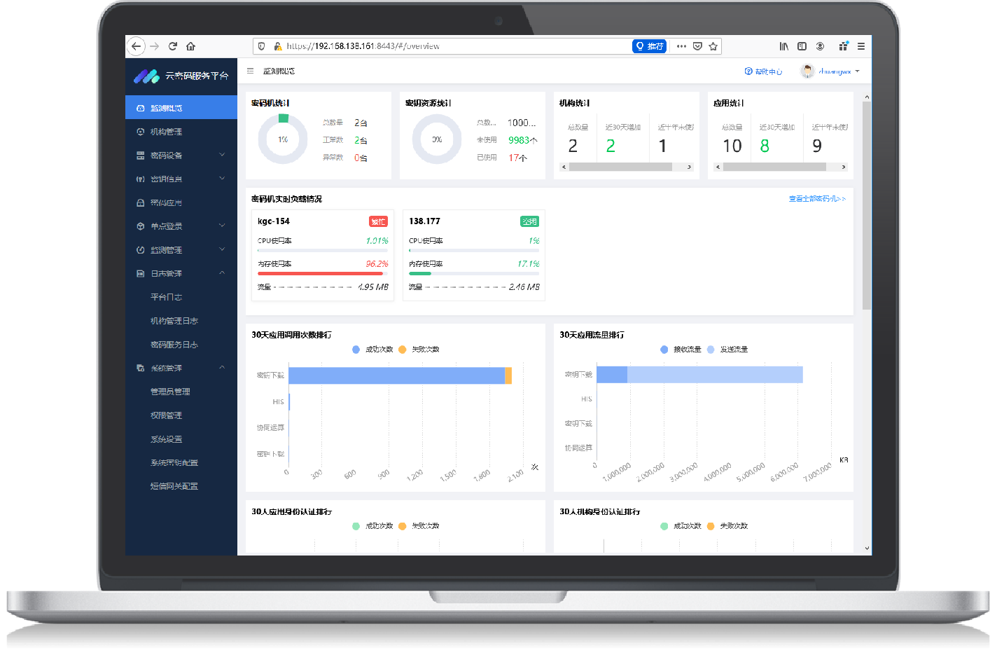 统一密码服务平台是一款提供集中的密码资源管理、密码服务管理、应用接入管理功能的综合管理平台,支持SM2、SM3、SM4、SM9、ZUC、ECS国密算法,为业务系统提供统一的密码功能服务,支撑用户各种业务系统在等级保护、密码测评等领域的密码合规应用需求。